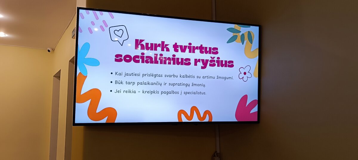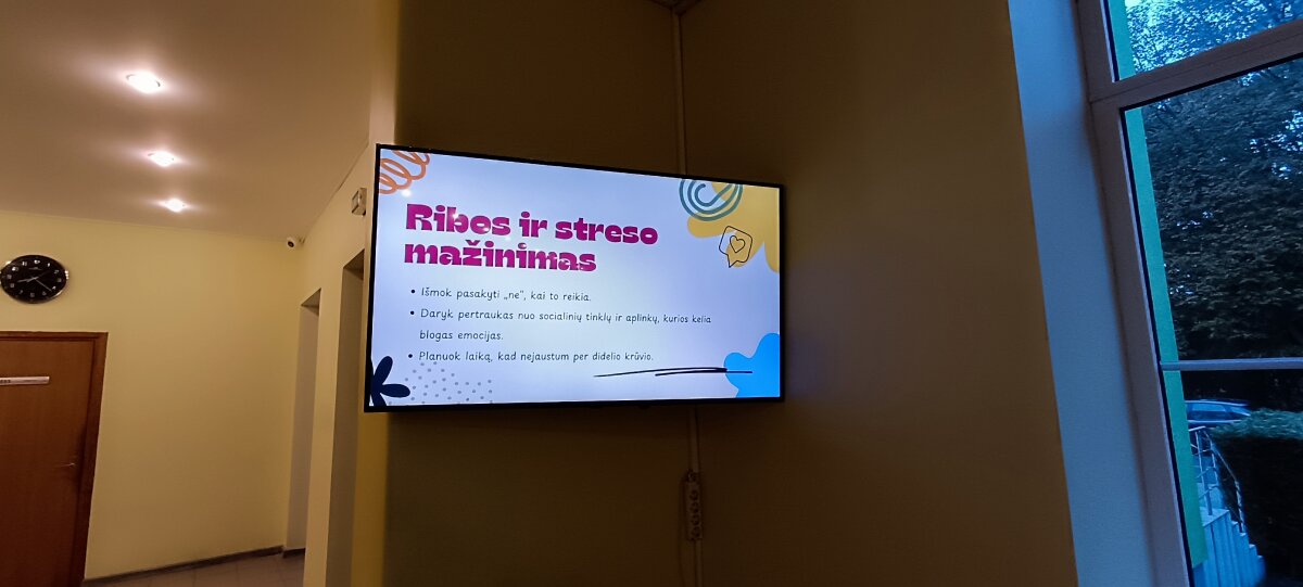 Per pertraukas mokyklos televizoriaus ekrane buvo rodoma naudinga informacija apie psichikos sveikatą, emocinį raštingumą, streso įveikos būdus ir bendravimo įgūdžius. Ši informacija padėjo mokiniams geriau suprasti save ir kitus.