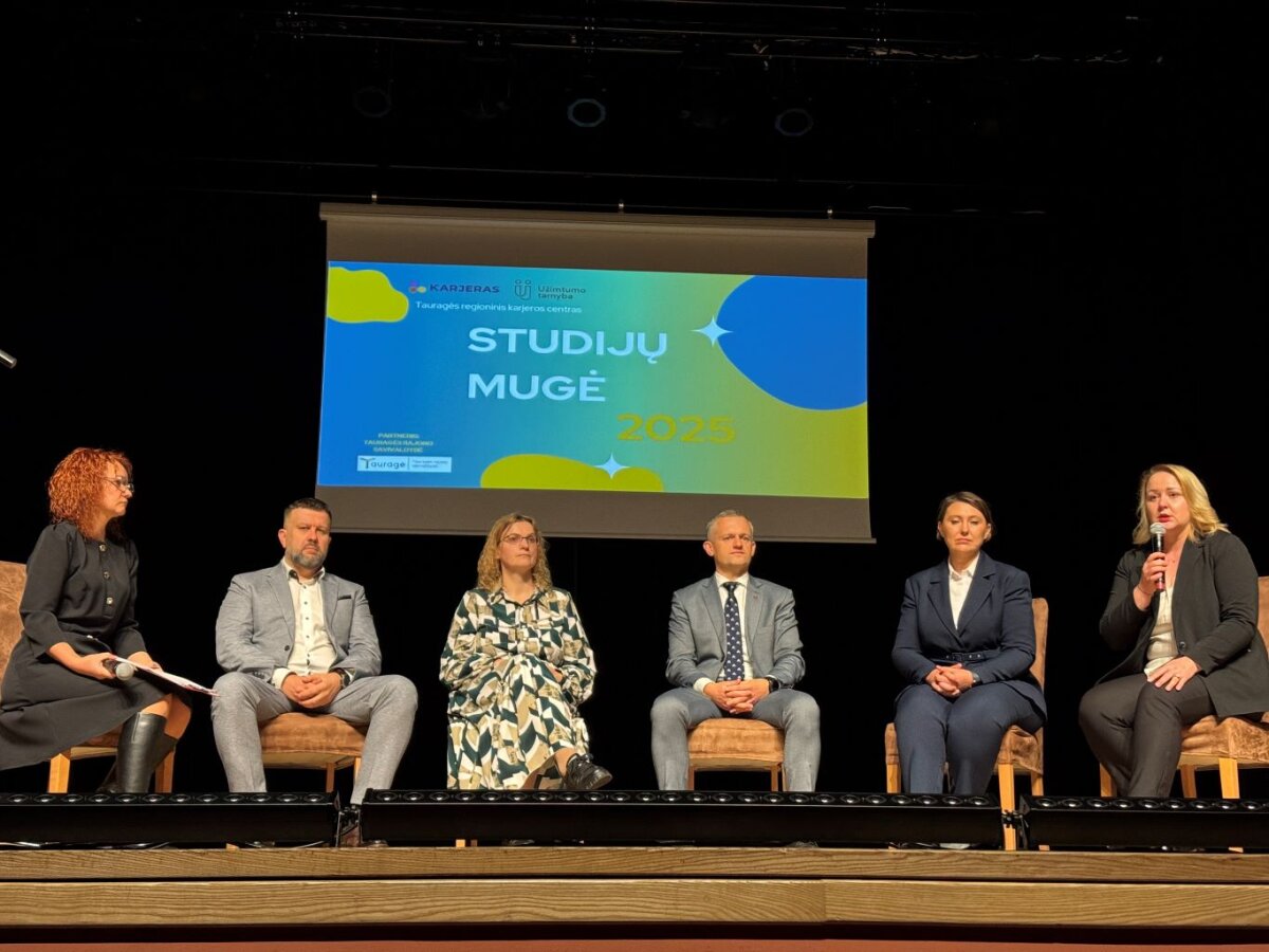 Spalio 29 d. gimnazijos I–IV klasių mokiniai dalyvavo „Studijų mugėje 2025“ Tauragėje. Čia jie susipažino su universitetų, kolegijų, profesinio rengimo centrų ir statutinių įstaigų atstovais, taip pat su pareigūnus ir kariškius rengiančiomis mokymo įstaigomis. Mokiniai sužinojo apie įvairias studijų programas, profesijas ir karjeros kelius – nuo priėmimo tvarkos ir reikalingų įgūdžių iki stipendijų, praktikų ir kitų galimybių, padedančių planuoti ateitį. Jie taip pat turėjo progą paklausyti teminių pranešimų, stebėti diskusiją „Kas dirbs Tauragėje rytoj?“ ir užduoti klausimus specialistams bei studentams apie juos dominančias profesijas. Puiki patirtis, suteikusi žinių ir įkvėpimo drąsiau planuoti savo ateitį – čia pat, savo mieste!